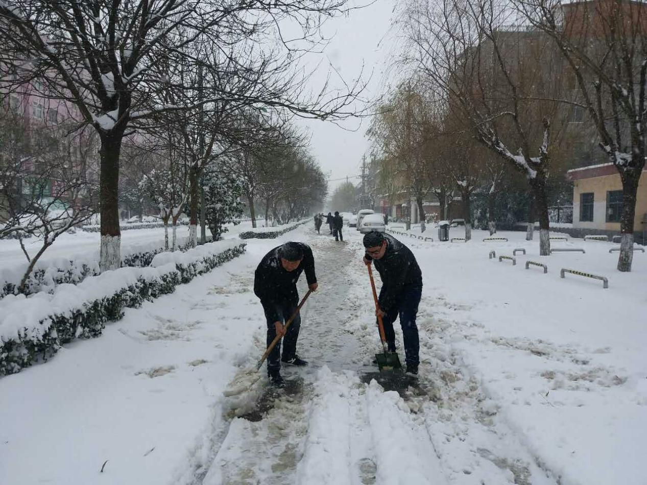 13日,遂平縣普降暴雪,路面積滿一層厚厚的冰雪,給出行人員帶來(lái)極大的不便。該店在4日上午一上班就組織后勤人員清掃路面積雪。大家揮動(dòng)鐵锨和掃把,分工協(xié)作,干得熱火朝天,保障了群眾暢通、有序、和諧的道路交通和生產(chǎn)、生活環(huán)境。