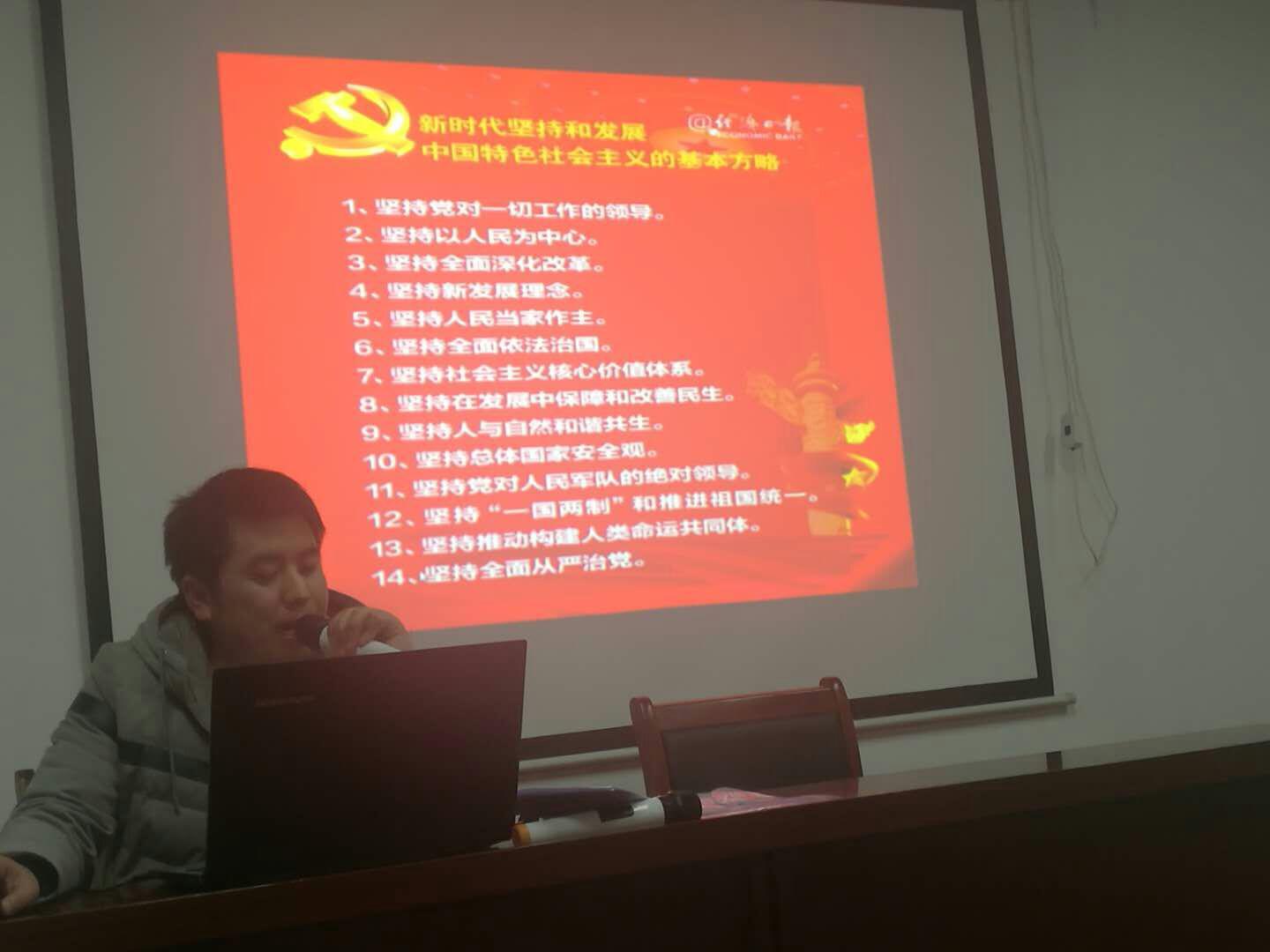 黨的十九大精神催人奮進(jìn)、鼓舞人心。獲嘉縣店始終把學(xué)習(xí)宣傳貫徹黨的十九大精神作為首要政治任務(wù),為了不斷將十九大精神引向深入,使廣大黨員干部職工學(xué)懂、弄懂,進(jìn)一步堅(jiān)定文化自信,做好宣傳黨的思想文化的主陣地作用。1月16日下午,縣店邀請(qǐng)縣委黨校教師唐星為該店黨員干部職工講授黨課“中國(guó)特色社會(huì)主義是改革以來黨的全部理論和實(shí)踐的主題”。