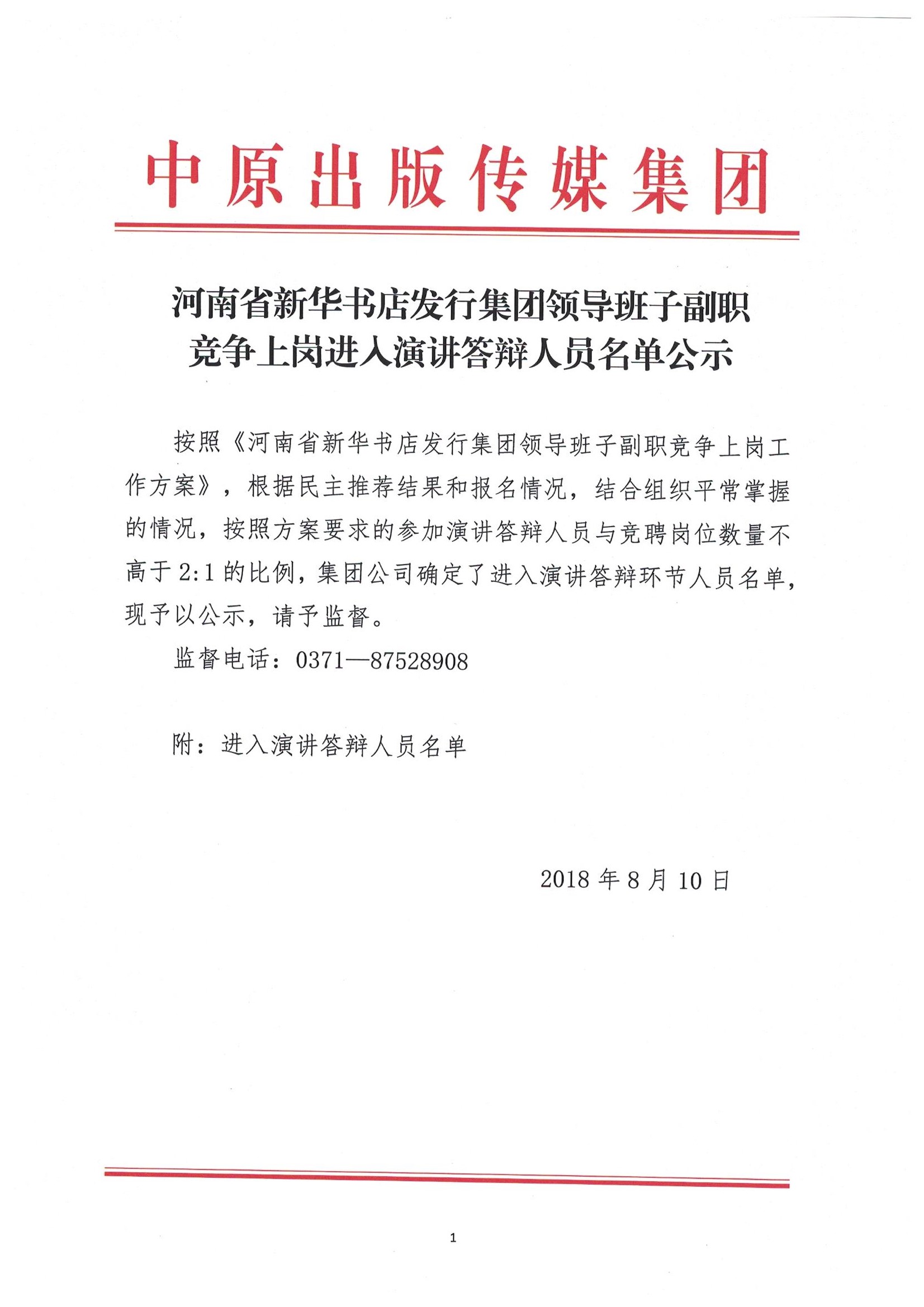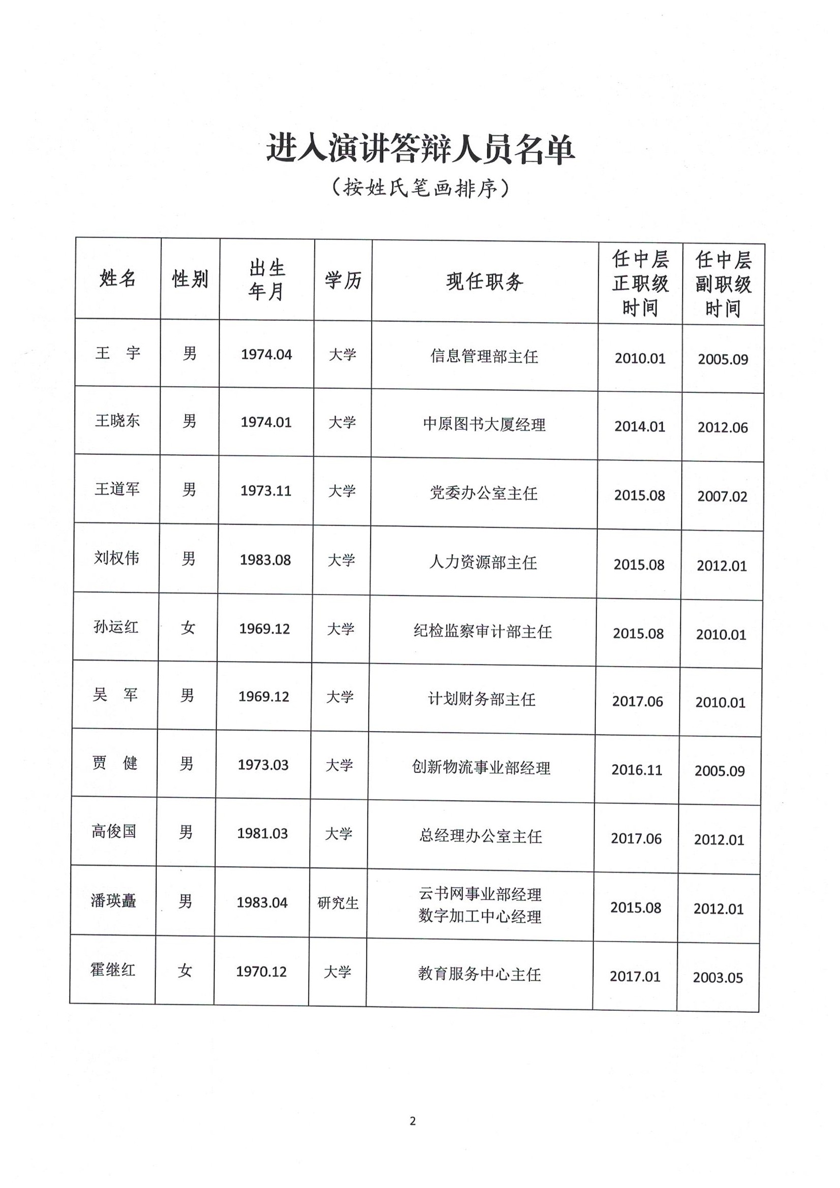 河南省新華書店發(fā)行集團領(lǐng)導(dǎo)班子副職競爭上崗進入演講答辯人員名單公示