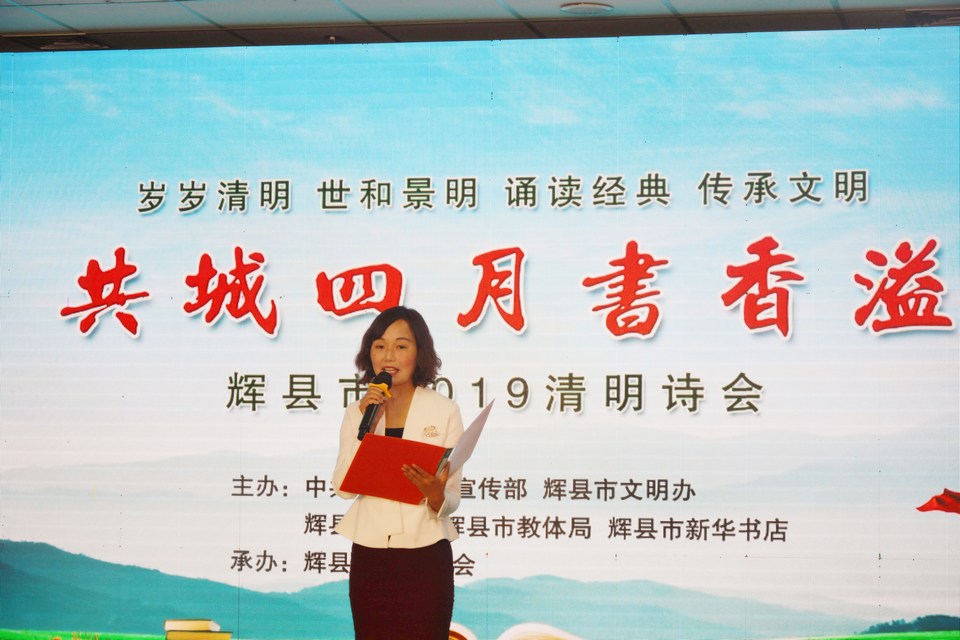 4月4日晚,由輝縣市委宣傳部、教育局、文聯(lián)、文明辦和輝縣市新華書店主辦,輝縣市朗誦協(xié)會承辦的“共城四月書香溢”輝縣市2019清明詩會,在書店圖書大廈舉辦。