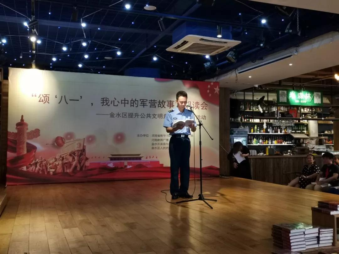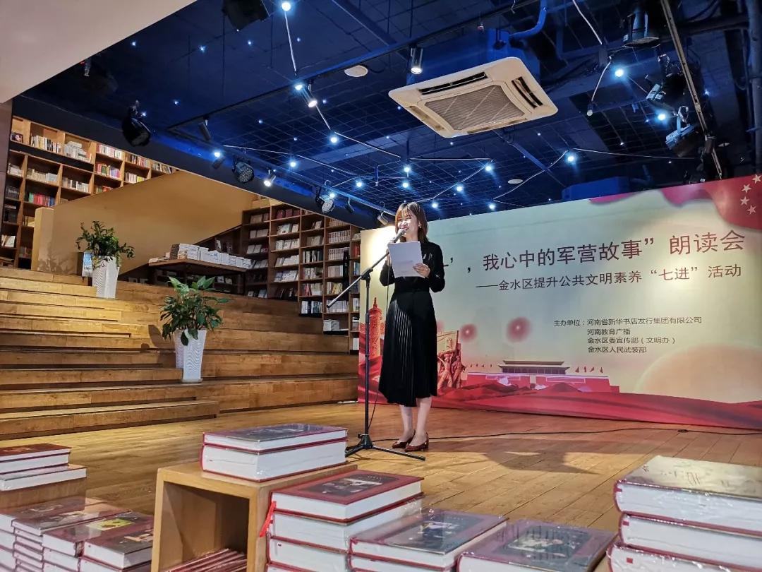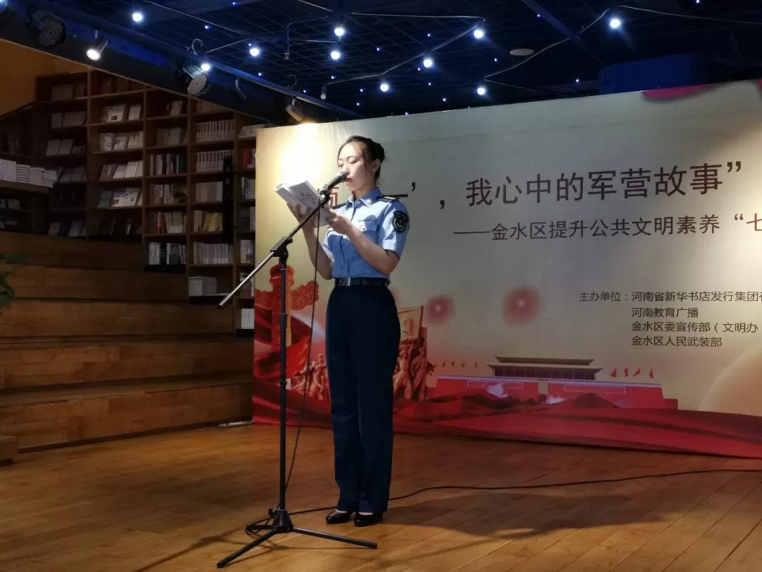 8月1日上午,為慶祝中國人民解放軍成立92周年,更好展現(xiàn)當代人民子弟兵卓越風采,講述軍民相擁的動人故事,推進提升公共文明素養(yǎng)“七進”工作,河南省新華書店發(fā)行集團有限公司、河南教育廣播、金水區(qū)委宣傳部(文明辦)、金水區(qū)人民武裝部共同舉辦“頌‘八一’,我心中的軍營故事”朗讀會,暨金水區(qū)提升公共文明素養(yǎng)“七進”系列活動在中原圖書大廈回聲館舞臺舉行。