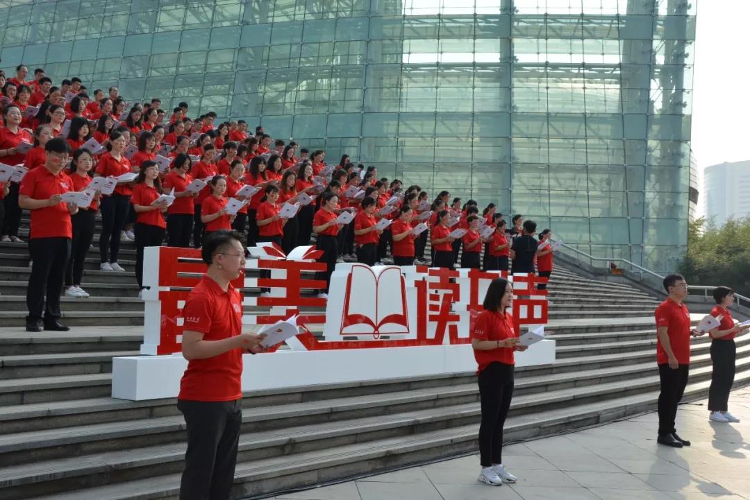 由中共河南省委宣傳部、中原出版?zhèn)髅郊瘓F(tuán)指導(dǎo),河南省新華書(shū)店發(fā)行集團(tuán)承辦的“慶祝新中國(guó)成立70周年‘最美讀書(shū)聲’全民閱讀活動(dòng)”伴隨著悠揚(yáng)熟悉的旋律和瑯瑯誦讀聲,9月28日上午10:30,百城同唱“我和我的祖國(guó)”慶祝新中國(guó)成立70周年——“最美讀書(shū)聲”全民誦讀快閃活動(dòng),在我省各市縣300多處文化地標(biāo)、核心區(qū)域或商業(yè)中心同時(shí)舉辦,全省10000多名新華人攜數(shù)萬(wàn)群眾共同唱響“我和我的祖國(guó)”,用初心和使命為祖國(guó)70華誕獻(xiàn)禮。