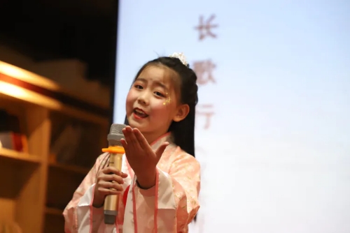 “七十年春華秋實(shí),七十年日升月落。這里,有我們熱血澎湃的青春年華…”,2019年12月29日晚,在中原圖書大廈組織開展的“最美讀書聲”慶元旦閱讀活動上,8歲的曹子睿小朋友正在用鏗鏘有力的聲音深情朗誦《70年贊歌》。