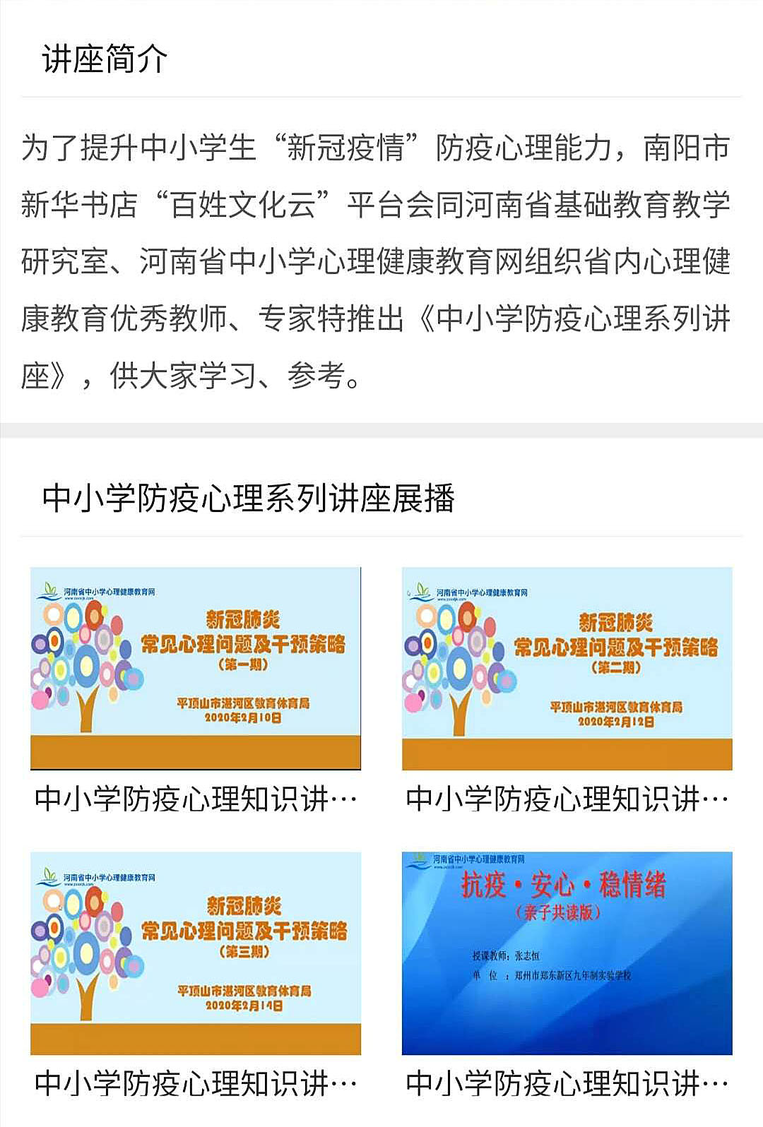 《中小學(xué)防疫心理知識(shí)講座》上線百姓文化南陽云