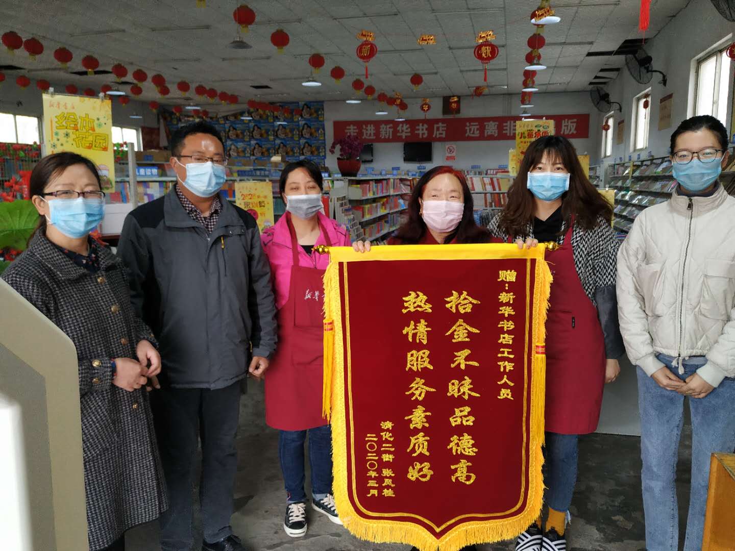 3月26日上午,清化鎮(zhèn)二街的張風(fēng)桂女士帶著印有“拾金不昧品德高、熱情服務(wù)素質(zhì)好”的錦旗送到博愛縣新華書店門市部,并為博愛縣新華書店的職工素質(zhì)點(diǎn)贊。