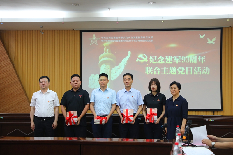 活動中,省委宣傳部文產(chǎn)處黨支部和發(fā)行集團(tuán)電商業(yè)務(wù)黨支部聯(lián)合舉行了“黨組織共建單位”揭牌儀式,并為兩個支部的退伍老兵送上了節(jié)日慰問。