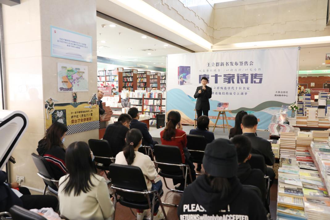 為了能與王立群先生面對面交流,上千名讀者一早來到鄭州購書中心排隊等候,還有不少讀者從外地專程趕來,有來自滎陽的詩詞愛好者,也有來自重慶的“鐵桿”書粉。王立群與讀者們真誠地分享了該書選取的主要人物,從盛唐到晚唐,以詩為經(jīng),以史為緯,深刻的解讀了一代詩人的廟堂江湖夢。在新書發(fā)布會上,王立群說,以往的唐代詩歌作品解讀類書籍,一般是通過介紹單篇作品進行人物或作品解讀,就像一顆顆珍珠沒有串成線。在新書《唐十家詩傳》中,他在唐代眾多詩人中選了十位詩人,將這些詩人的人生,用文學散文筆法介紹其人生重要節(jié)點的代表作,并一一解讀,好比把一顆顆珍珠似的作品以詩人生平為線串連起來,側(cè)重講述創(chuàng)作的時間、地點、創(chuàng)作的緣由;顒蝇F(xiàn)場,王立群還與讀者朋友進行了親切的互動,對讀者提出的問題,他以一個長輩的身份,從專業(yè)的角度進行了解答,現(xiàn)場掌聲不斷。