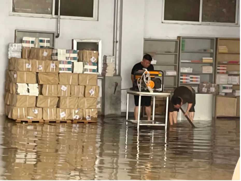 連續(xù)暴雨,大象出版社、河南電子音像出版社、河南印刷集團等冒雨緊急加固防汛沙堤,用沙袋駐防,或是往高處轉(zhuǎn)運圖書教材,或是動用大功率抽水機連續(xù)作業(yè)等,都積極采取應(yīng)對措施控制災(zāi)情,確保了庫存圖書教材安全。