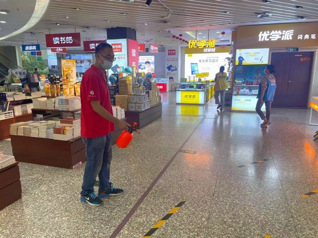 為做好新冠肺炎疫情防控工作,給廣大讀者創(chuàng)造一個(gè)安全健康的購(gòu)書環(huán)境,幾乎每一家書店都對(duì)店門口、咖啡座、辦公室等重點(diǎn)公共區(qū)域進(jìn)行了消毒。同時(shí)還會(huì)不定時(shí)地對(duì)書架、收銀臺(tái)、查閱臺(tái)、樓梯扶手等讀者經(jīng)常接觸的公共服務(wù)設(shè)施進(jìn)行消毒,確保環(huán)境干凈整潔。