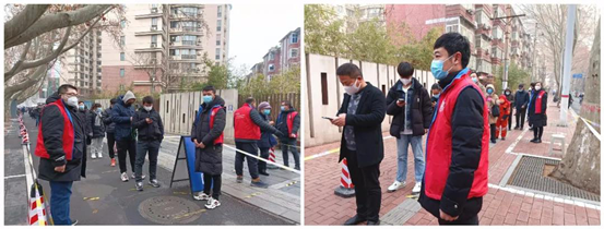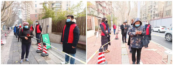 發(fā)行集團志愿者不畏寒冷,按照要求提前趕到采樣點,做好服務(wù)準(zhǔn)備工作。采樣期間,志愿者們根據(jù)工作分工,有的負(fù)責(zé)引導(dǎo)市民、維護(hù)現(xiàn)場秩序,提醒大家保持“一米線”距離,有序檢測,同時解答群眾詢問;有的志愿者專門負(fù)責(zé)把守等候區(qū),將排隊人員10人歸為一組,有序前行進(jìn)行掃碼確認(rèn),到達(dá)核酸集采處完成采樣。中午時分,志愿者輪流就地用餐,工作不曾停歇,忠誠值守完成當(dāng)天工作任務(wù)。