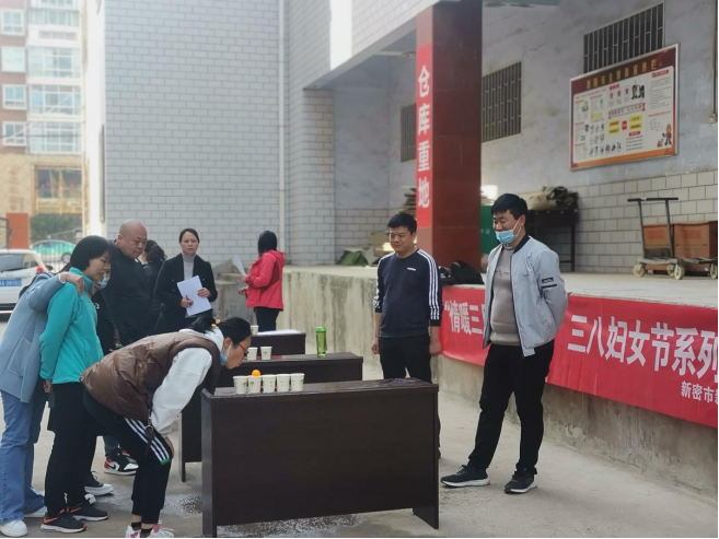 為迎接“三八婦女節(jié)”來(lái)臨,活躍節(jié)日氣氛,豐富職工的文化生活,增強(qiáng)職工的凝聚力。3月8日下午,新密市店組織開展慶“三八”文體活動(dòng)。活動(dòng)有拔河比賽、吹乒乓球、跳繩、踢毽子、跳棋、象棋六個(gè)項(xiàng)目。