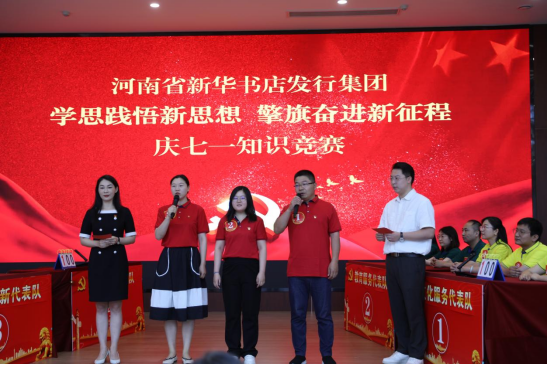 在慶祝中國共產黨102周年華誕之際,河南省新華書店發(fā)行集團黨委于7月6日隆重舉辦“學思踐悟新思想 擎旗奮進新征程”慶“七一”知識競賽,發(fā)行集團7個黨支部選派選手組隊參加比賽。集團公司黨委編輯委員會辦公室主任李志強到場指導。