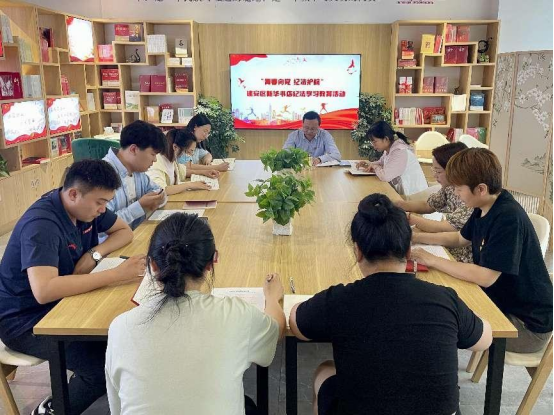 5月7日,建安區(qū)店組織年輕干部職工開展“青春向黨 紀(jì)法護(hù)航”紀(jì)法學(xué)習(xí)教育活動;顒又校嗄旮刹柯毠ぜw學(xué)習(xí)《中國共產(chǎn)黨紀(jì)律處分條例》、觀看警示教育片,深刻領(lǐng)悟黨風(fēng)廉政建設(shè)和反腐敗斗爭的艱巨性和重要性,并結(jié)合自身工作實際,暢談學(xué)習(xí)感悟;顒幼詈箝_展黨紀(jì)學(xué)習(xí)教育知識答題環(huán)節(jié),檢驗學(xué)習(xí)成果,推進(jìn)黨紀(jì)學(xué)習(xí)入腦入心、落實見效。