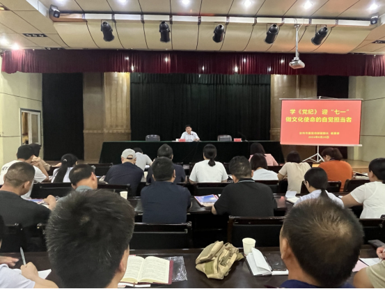 6月26日,汝州市店特邀市委宣傳部副部長(zhǎng)崔英鋒蒞臨主講“迎七一”專題黨課。崔英峰以《學(xué)<黨紀(jì)> 迎“七一” 做文化使命的自覺擔(dān)當(dāng)者》為題,圍繞自覺遵守《條例》是做好工作的紀(jì)律保障、自覺擔(dān)當(dāng)文化使命是工作的“方向盤”和做好掃黃打非工作是提升業(yè)務(wù)的“助力器”三個(gè)方面,為全體黨員干部上了一堂精彩生動(dòng)、內(nèi)容充實(shí)的黨課,對(duì)市店深入開展黨紀(jì)學(xué)習(xí)教育、推動(dòng)各項(xiàng)工作高質(zhì)量發(fā)展起到了積極指導(dǎo)作用。