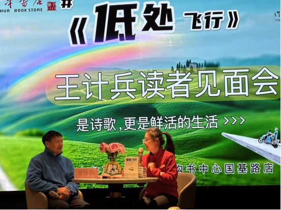 活動現(xiàn)場,王計兵還展示了自己詩集《低處飛行》,并深情朗誦了書中代表作。他的詩歌語言質(zhì)樸而深情,讓在場的每一個人都感受到了詩歌的力量和美好。此外,他還與讀者們進行了互動交流,回答了他們關(guān)于詩歌創(chuàng)作、人生哲學等方面的問題。其中談到關(guān)于子女教育的問題時,王老師表示:“只要孩子付出了自己最大的努力,做到不后悔就是最好的結(jié)果!