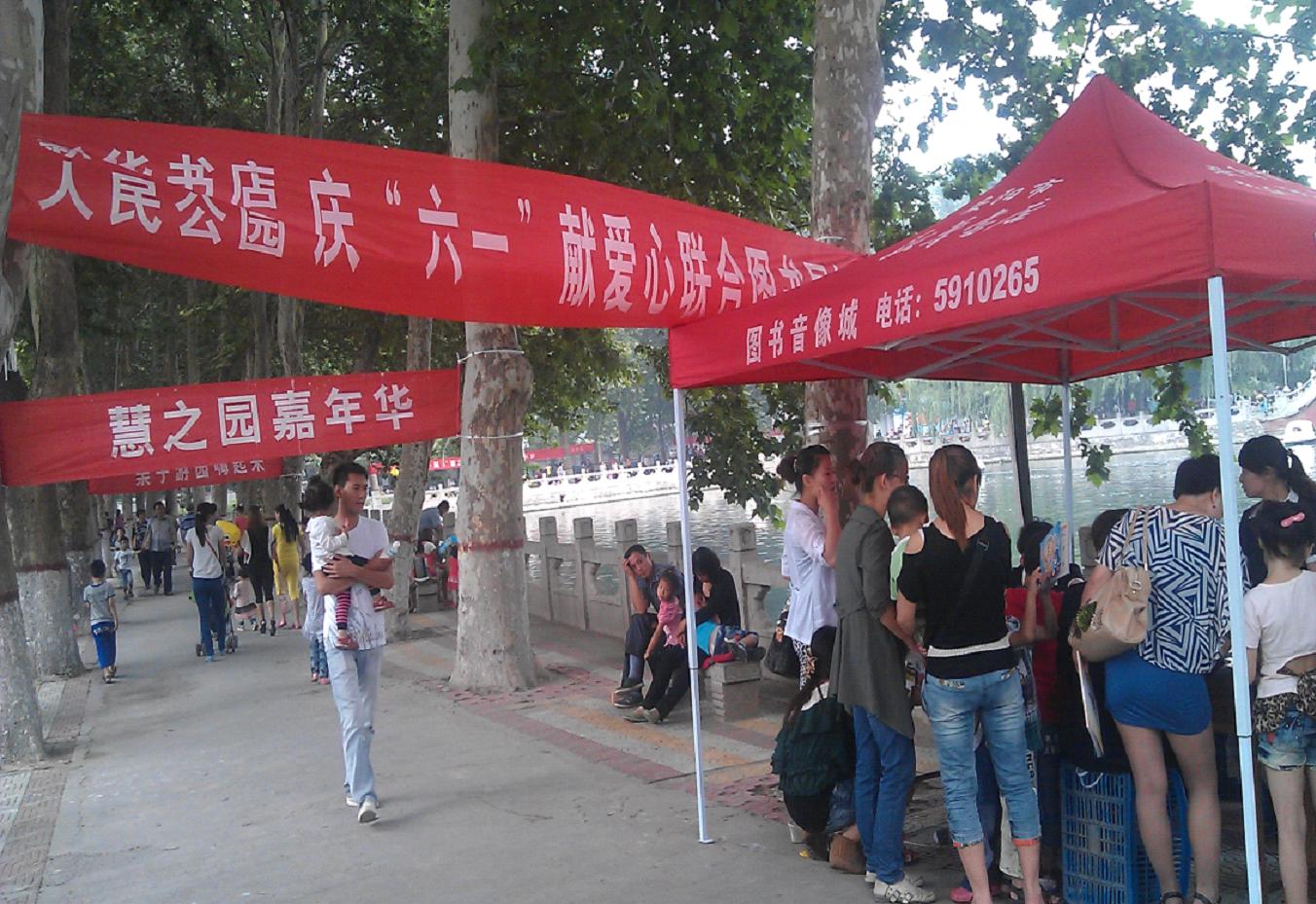 為慶!傲弧眹H兒童節(jié),安陽市店圖書音像城積極和市人民公園聯(lián)系,在6月1日到6月3日期間,聯(lián)合舉辦了為期三天的慶“六一”獻(xiàn)愛心圖書大展銷活動。