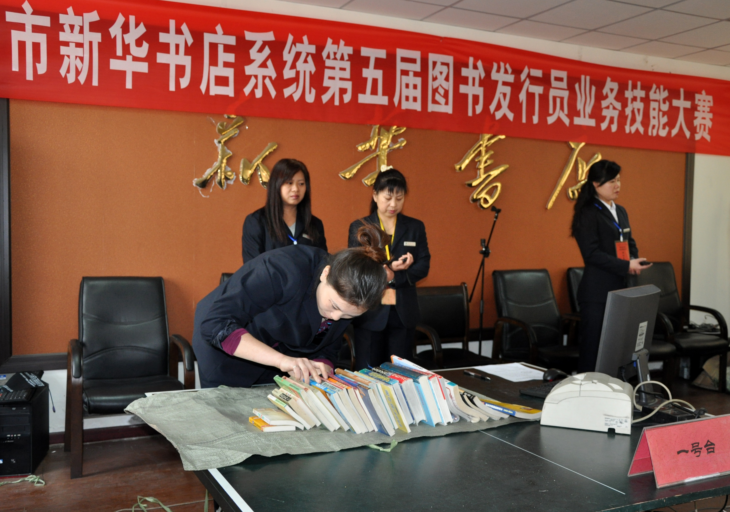 經(jīng)過緊張籌備和層層選拔,新鄉(xiāng)市店聯(lián)合市教科文衛(wèi)體工會舉辦的第五屆全區(qū)書店系統(tǒng)圖書發(fā)行員業(yè)務(wù)技能大賽于10月30、31日在市店二樓會議室隆重舉行。來自全區(qū)各店的60余名優(yōu)秀選手分別參加了市店組和縣(市)店組的比賽,比賽共設(shè)圖書推介、計算機(jī)中文及數(shù)字錄入、售書連續(xù)作業(yè)、圖書造型及手繪POP廣告制作五個項目,比賽根據(jù)選手的五項總成績決出名次,獲得大賽一、二、三等獎的選手將分別榮獲市級“五一勞動獎?wù)隆、“崗位技術(shù)能手”及“技術(shù)標(biāo)兵”等榮譽(yù)稱號。