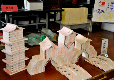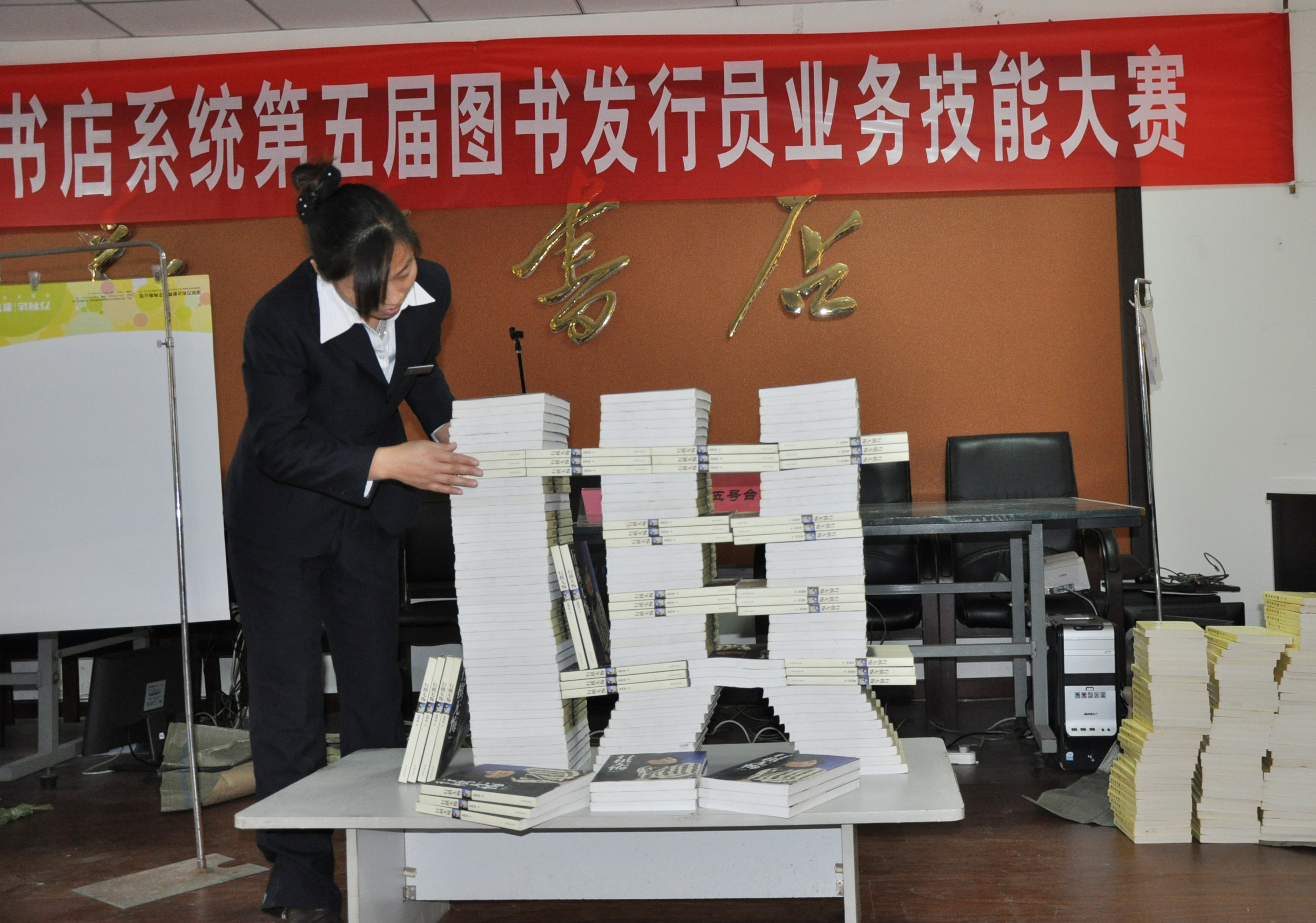此次圖書發(fā)行員技能大賽是市總工會和新華書店第五次聯(lián)合舉辦技能大賽,與住屆大賽相比,今年的比賽難度和準(zhǔn)備工作量增加了,可選手們的自信心和熟練程度卻一點(diǎn)沒減。在比賽現(xiàn)場,當(dāng)裁判員的開始指令發(fā)出后,臺下選手啞雀無聲,選手們一個個都能鍵指如飛、緊張熟練地將規(guī)定內(nèi)容輸入電腦,現(xiàn)場只有“嗒嗒嗒”的敲擊鍵盤的聲音,在圖書推介比賽項目中,每位選手都能結(jié)合自己推介的圖書特點(diǎn),向現(xiàn)場觀眾進(jìn)行全面、詳細(xì)的推介介紹,贏得了大家熱烈的掌聲,售書連續(xù)作業(yè)主要考核比賽選手的操作準(zhǔn)確度和連慣性,選手們都能做到計價、收款、開票、包扎四個過程一氣呵成,規(guī)定五分鐘的比賽操作,最快的選手僅用了兩分多鐘就全部完成;在圖書造型項目中,比賽選手各顯神通,充分發(fā)揮自己的想象能力,精心設(shè)計、“建造”出別出心裁的造型:有宏偉穩(wěn)固的高塔、有具有詩意的小橋流水、青蛙戲水、有氣勢宏大的古城建筑、也有設(shè)計巧妙的龍舟,還有用圖書拼出的文字“十八大”等,有的圖書造型文化氣息濃厚,有的造型突現(xiàn)時代特征,給人以強(qiáng)烈的視覺沖擊力,全面體現(xiàn)了圖書的文化產(chǎn)品特點(diǎn)。
