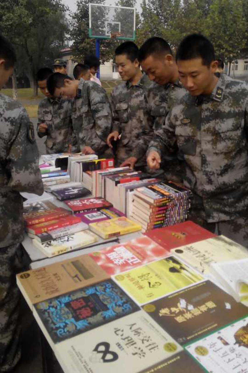 日前,為豐富武警官兵的精神文化生活,滿足廣大官兵的閱讀需求,平頂山市店抽調(diào)業(yè)務(wù)骨干人員利用周末時間,組成“平頂山市新華書店售書服務(wù)隊”,到該市武警中隊開展送書到軍營活動。服務(wù)隊精心挑選了具有針對性的貼近部隊實際的生活、文藝、社科、科技類圖書800種,900多冊,以最大的優(yōu)惠讓利給官兵,并以優(yōu)質(zhì)的服務(wù)受到部隊官兵的熱烈歡迎。
