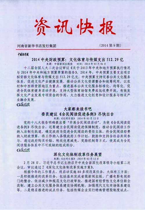 來源:河南省新華書店發(fā)行集團(tuán)有限公司  作者:河南省新華書店發(fā)行集團(tuán)有限公司  發(fā)布時(shí)間:2014/3/14 10:46:22  閱讀次數(shù):13357