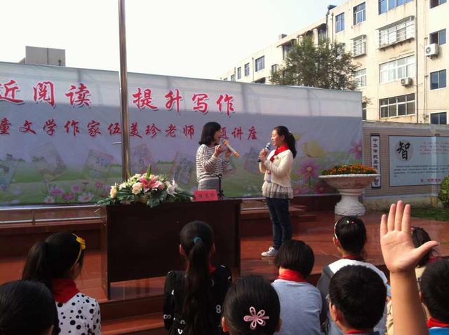 國慶節(jié)期間,登封市店特邀著名兒童作家伍美珍在登封市北街小學(xué)隆重舉辦了簽售活動(dòng),在活動(dòng)現(xiàn)場,數(shù)千師生聆聽了伍美珍寫作之路,并與伍美珍進(jìn)行了親密互動(dòng)。本次活動(dòng)共簽售《番茄土豆練練看》《糖葫蘆也瘋狂》《自命不凡的天才》《阿呆穿越筆記》《我們班的小童星》系列圖書1400余冊。