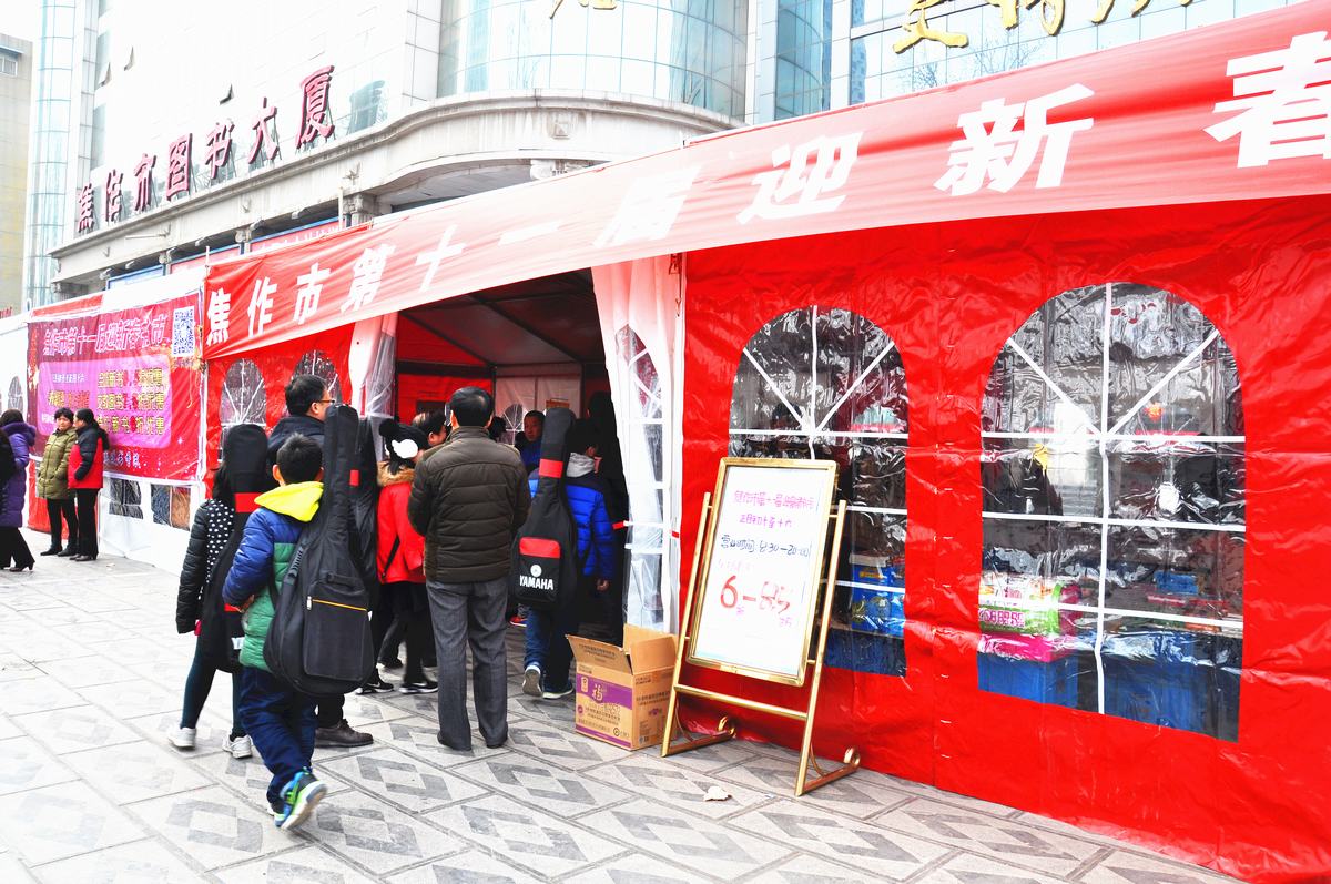 2月28日(農(nóng)歷初十),焦作市店在圖書大廈門前舉辦了為期7天的“第十一屆迎新春書市”活動(dòng)。今年書市全場(chǎng)圖書8.5折,文教圖書7.5折,特價(jià)新書6折,精選了社科類、文藝類、少兒類、文教類、科技類、特價(jià)新書類圖書及文化體育藝術(shù)類書籍和產(chǎn)品供讀者閱讀及選購。
