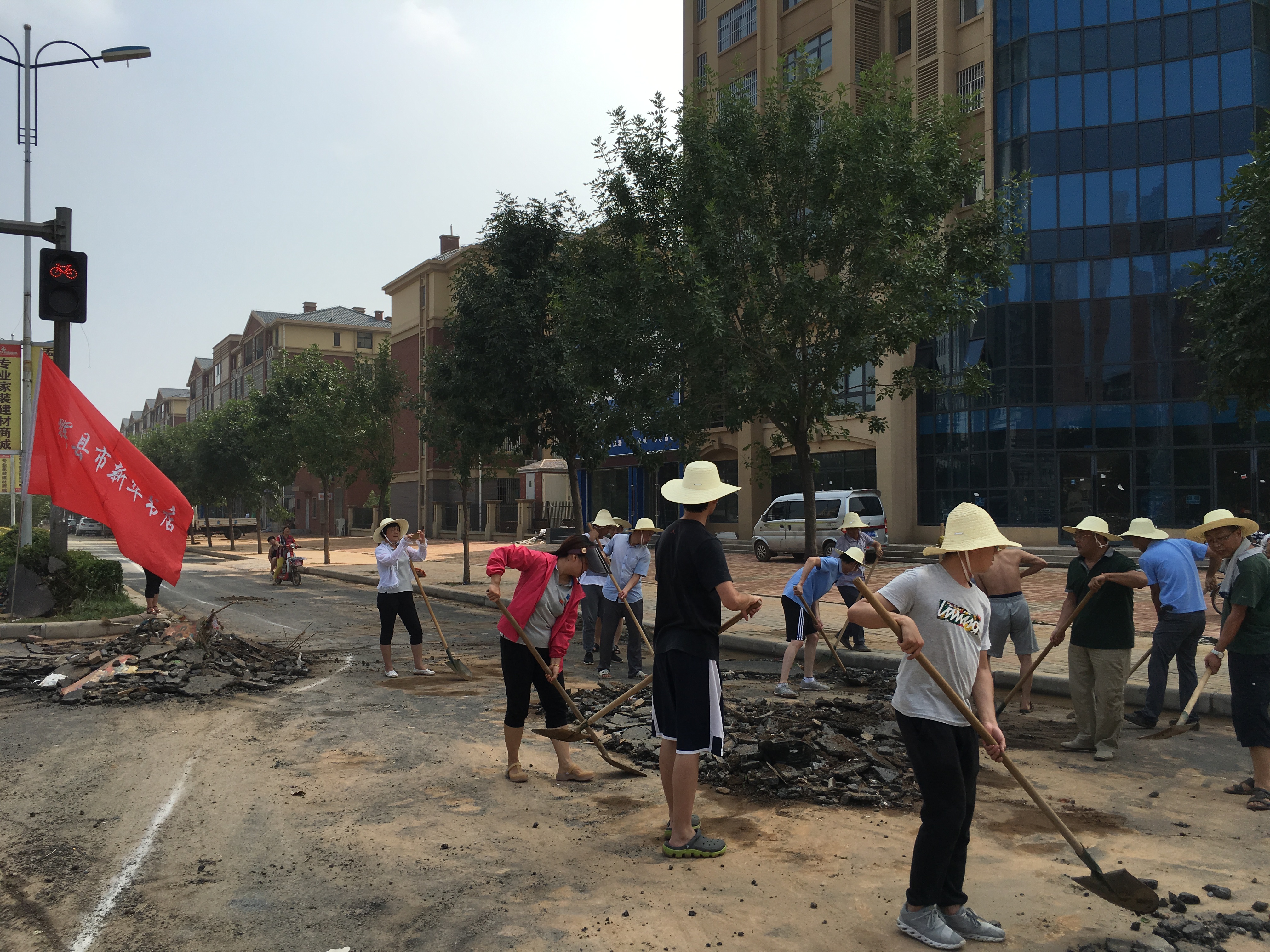 7月9日,輝縣市遭遇了百年不遇的雨災(zāi),損失慘重。7月10日下午,輝縣市新華書店近30名黨員干部、職工,積極響應(yīng)市委市政府的號召,冒著酷暑炎熱,在九山路南段清理洪水過后留下來的淤泥和垃圾。參加勞動的黨員干部、職工用鐵鍬鏟,用掃帚掃,不怕臟、不怕累,清淤泥、撿垃圾,盡快把淤泥清掃干凈,幫助群眾恢復(fù)生產(chǎn)生活,用行動為自救家園努力著。