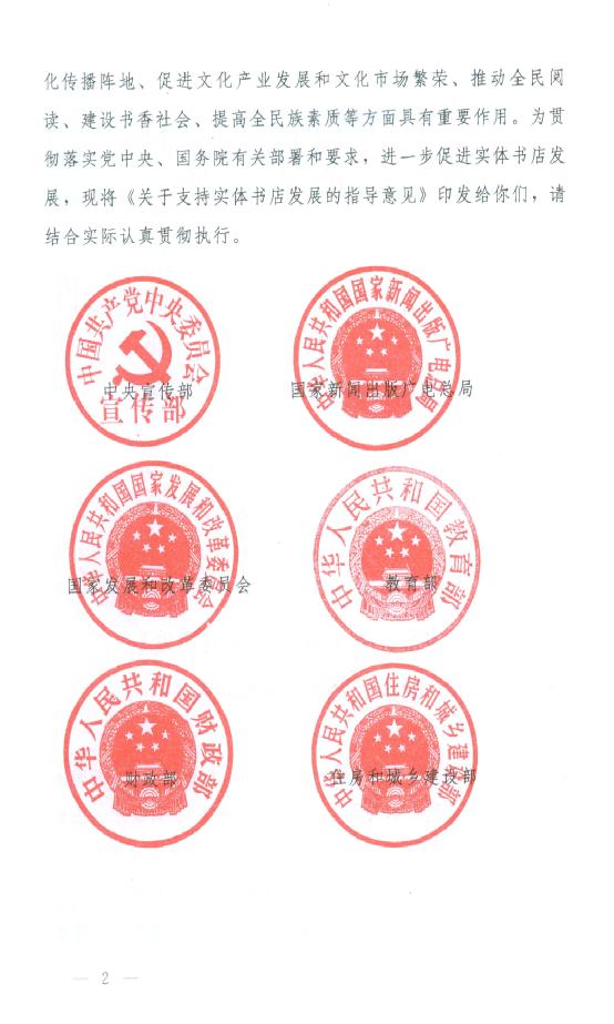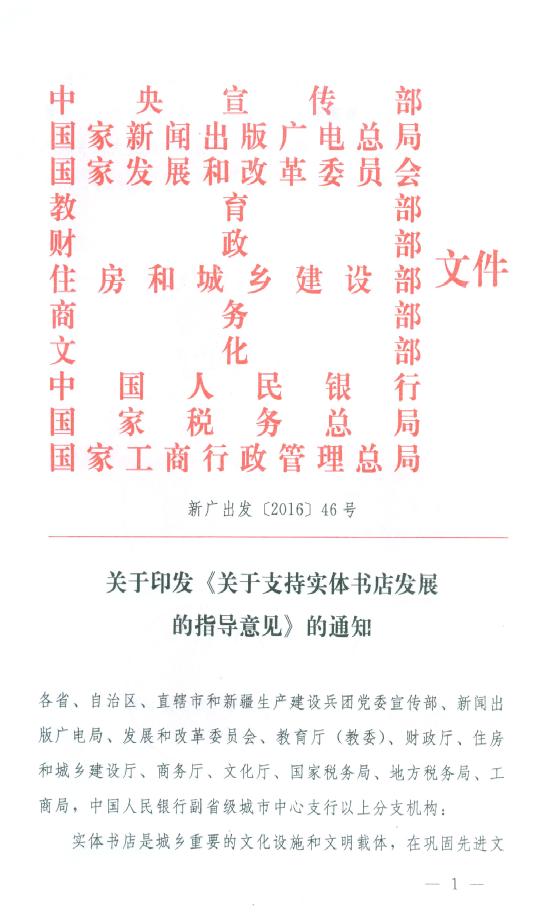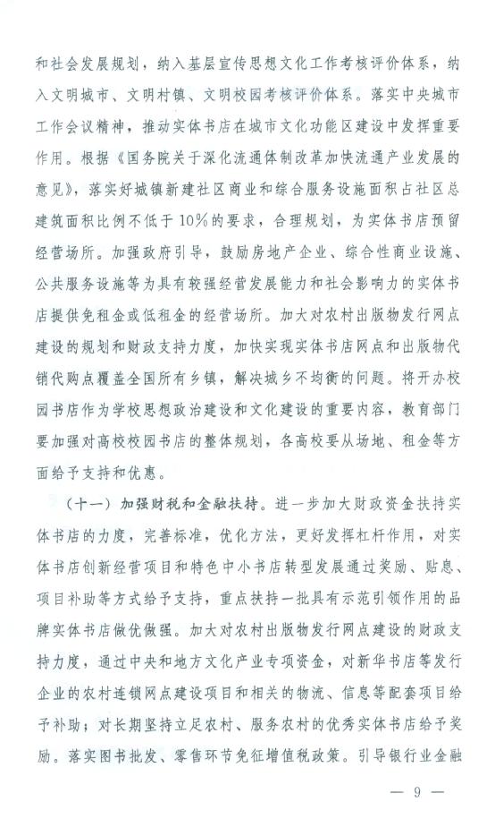 關(guān)于印發(fā)《關(guān)于支持實體書店發(fā)展的指導(dǎo)意見》的通知