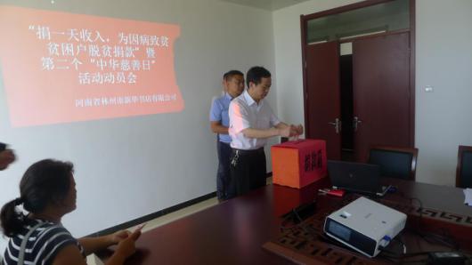 為促進(jìn)社會慈善公益事業(yè)健康發(fā)展,進(jìn)一步弘揚(yáng)樂善好施、扶貧濟(jì)困的中華民族傳統(tǒng)美德,近日,林州市新華書店積極響應(yīng)市委、市政府號召,組織公司干部職工召開“捐一天收入,為因病致貧貧困戶脫貧捐款”暨第二個“中華慈善日”活動動員會。干部職工一致響應(yīng),紛紛慷慨解囊,踴躍捐助,掀起了捐款熱潮。經(jīng)過清點(diǎn)統(tǒng)計,該店共籌集善款6500元,已全部送交市慈善總會,主要用于健康扶貧和在全市范圍內(nèi)開展安老、撫孤、助醫(yī)、助教、濟(jì)困等慈善救助活動。